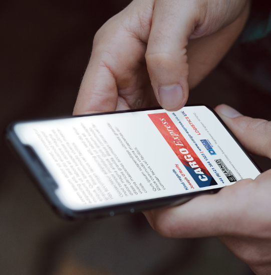 Cargo Express' social media platforms shown on a users phone